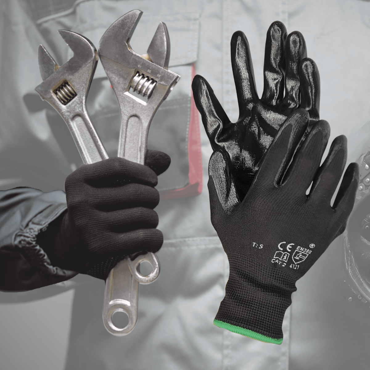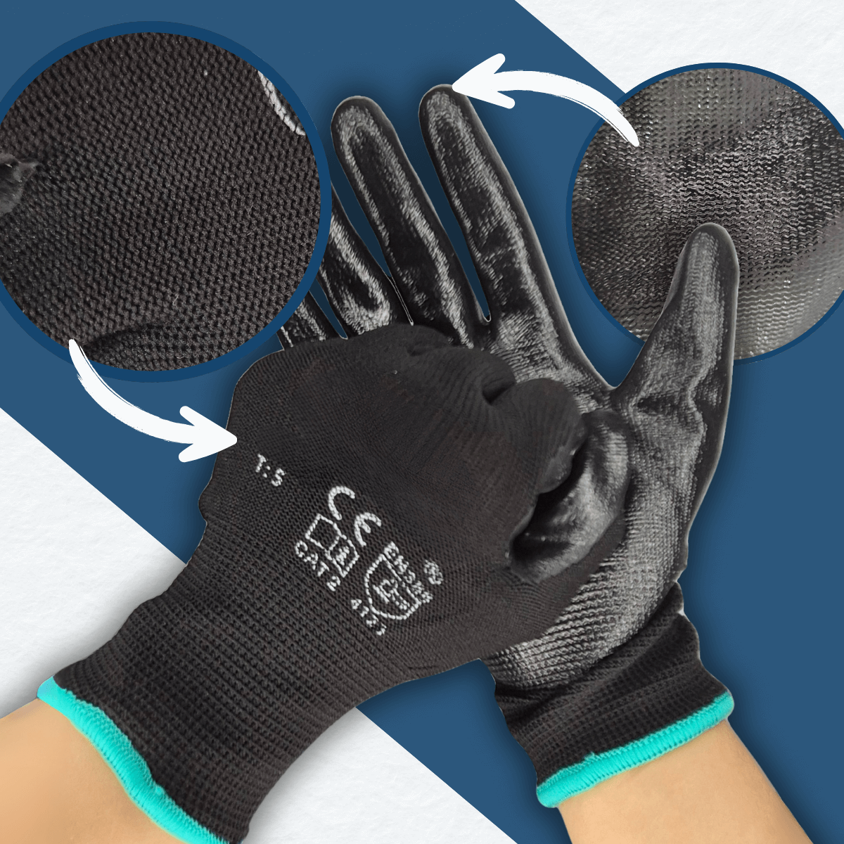 Guantes de Nylon con Recubrimiento de Nitrilo para Mecánica e Industria