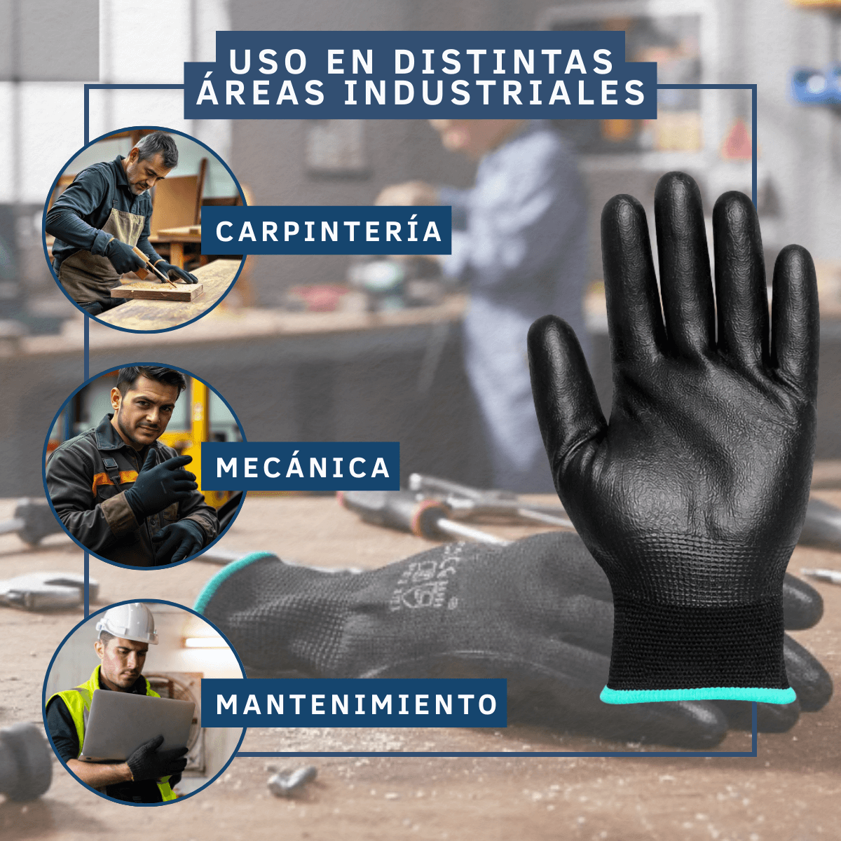 El recubrimiento de nitrilo brinda alta resistencia a la abrasión y excelente desempeño en manipulación de herramientas, piezas metálicas y componentes con rebaba ligera. Son ideales para mantenimiento, ensamble, logística y manufactura.