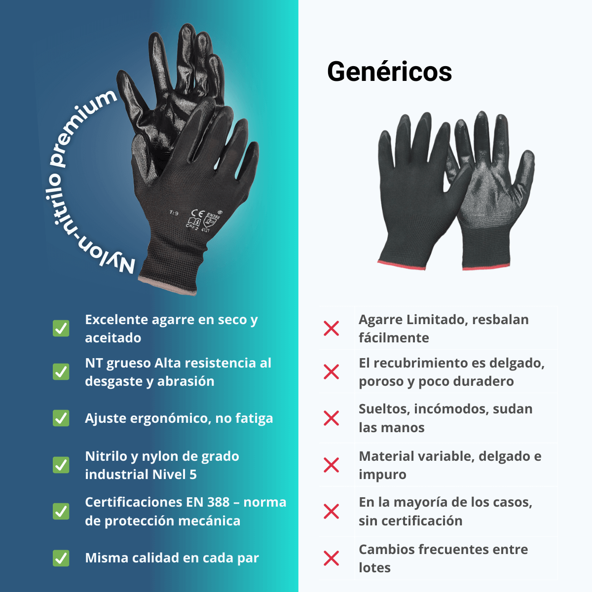 Cumplen con la norma EN388 para protección mecánica.